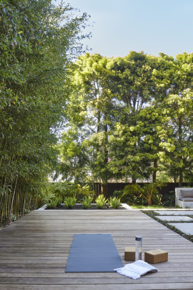 Breathing in fresh air and enjoying the sunlight are benefits you can add to your exercise routine. In this San Francisco yard, Shades of Green Landscape Architecture created a deck that’s a perfect spot for doing yoga and other workouts. Leave your yoga mat, jump rope, free weights or other workout equipment near the door so it will be easy to grab them and take them outdoors.