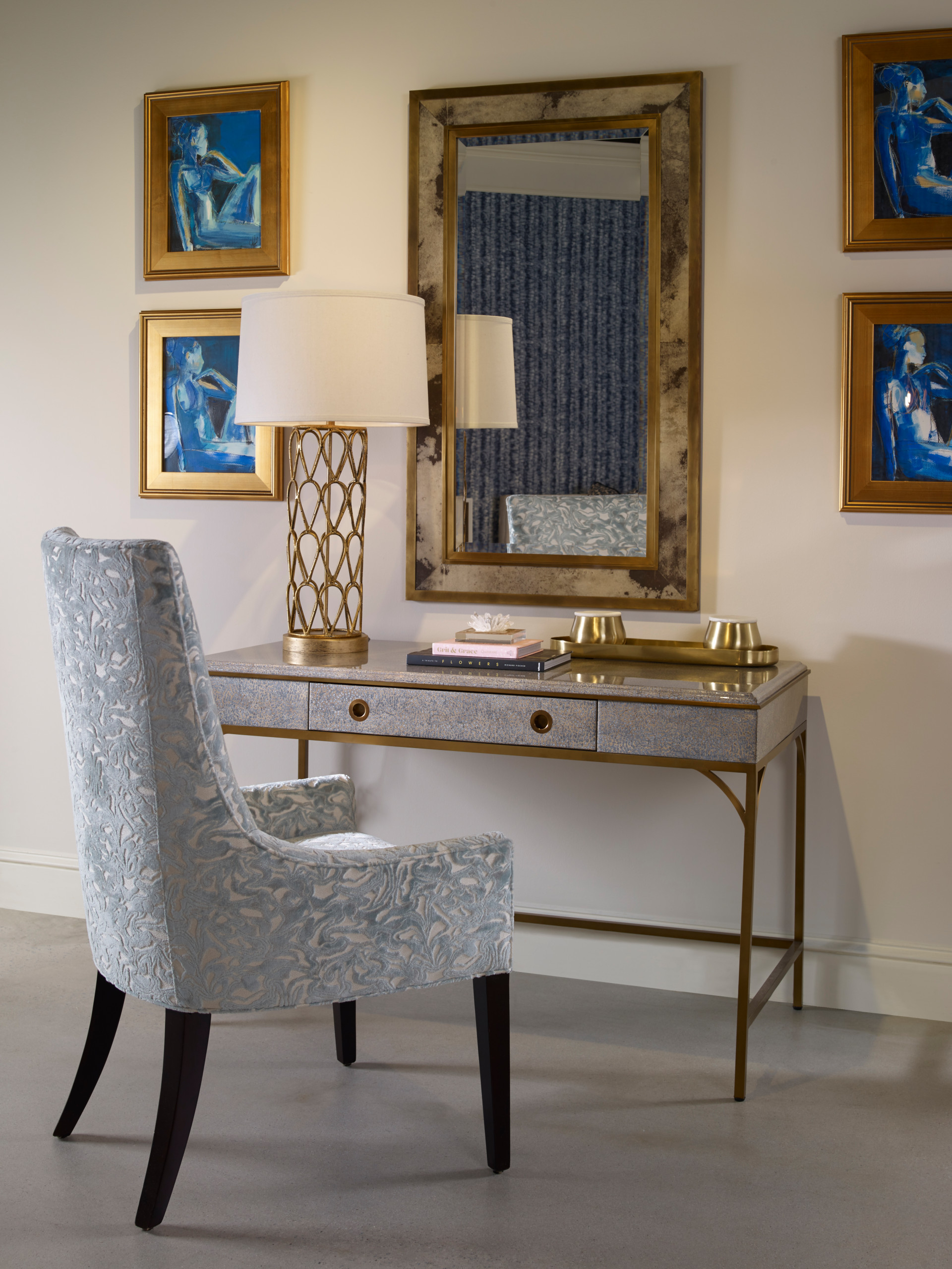 “Case goods” is industry-speak for large, hard furniture pieces that typically aren’t upholstered, such as dressers, bookcases and desks. Across the High Point Market, this season’s introductions shook up that definition, with many case goods sporting upholstered fronts or surfaces wrapped in real or faux leather, linen or grasscloth (a natural material that, incidentally, is also very much back in style in wallcoverings).