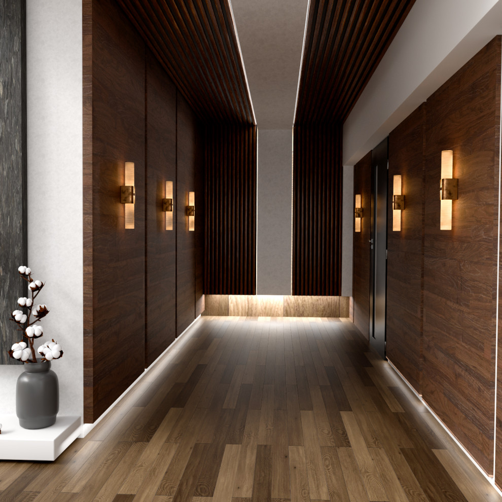 Lighting personalization is going beyond adjusting the fixture for space or style. The ability to control the light’s color temperature and brightness is also becoming the new standard, especially as the understanding of light’s impact on comfort and wellness grows. Accordingly, fixtures with discreet dimmer functions and color-changing technology — integrated “tunable” LEDs that can shift from cool daylight to warm evening tones, setting the mood and syncing with natural circadian rhythms — were easier to find at this market than at past shows. This Virtue stone sconce from Oxygen, a Quorum brand, is a luxe-looking example.
