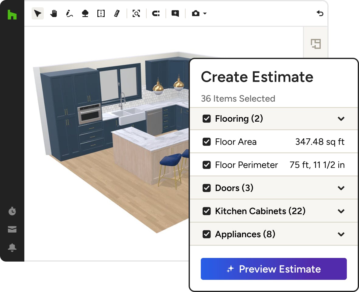 Add a new dimension to your sales process with Houzz Pro’s client-winning 3D Floor Plans—our built-in design and planning tool that delivers dazzling digital models with less learning curve and more project possibilities.