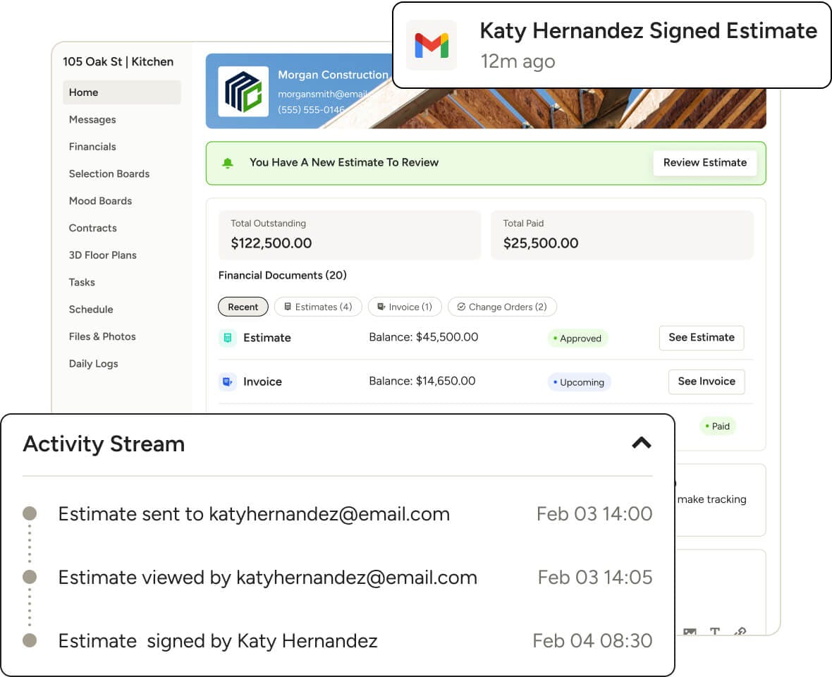 When it’s time to share your Estimate, don’t settle for an emailed PDF. Include clients in a collaborative way they’ll appreciate, while tracking every action in real-time.