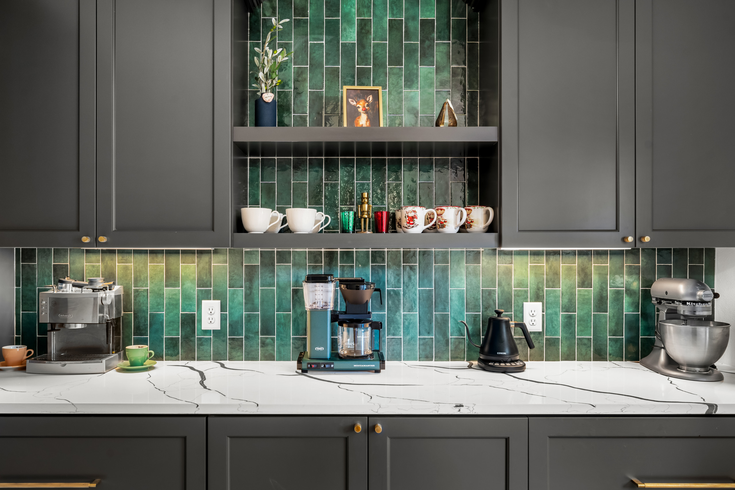 You’re going to be making a lot of hot drinks in the coming months, so why not set up a dedicated drinks station with everything you need for coffee, tea and hot chocolate? Assign part of your counter and cabinet space to the coffee machine, kettle, mugs and ingredients. If you’re planning a remodel, consider carving out space for a dedicated station for the future.