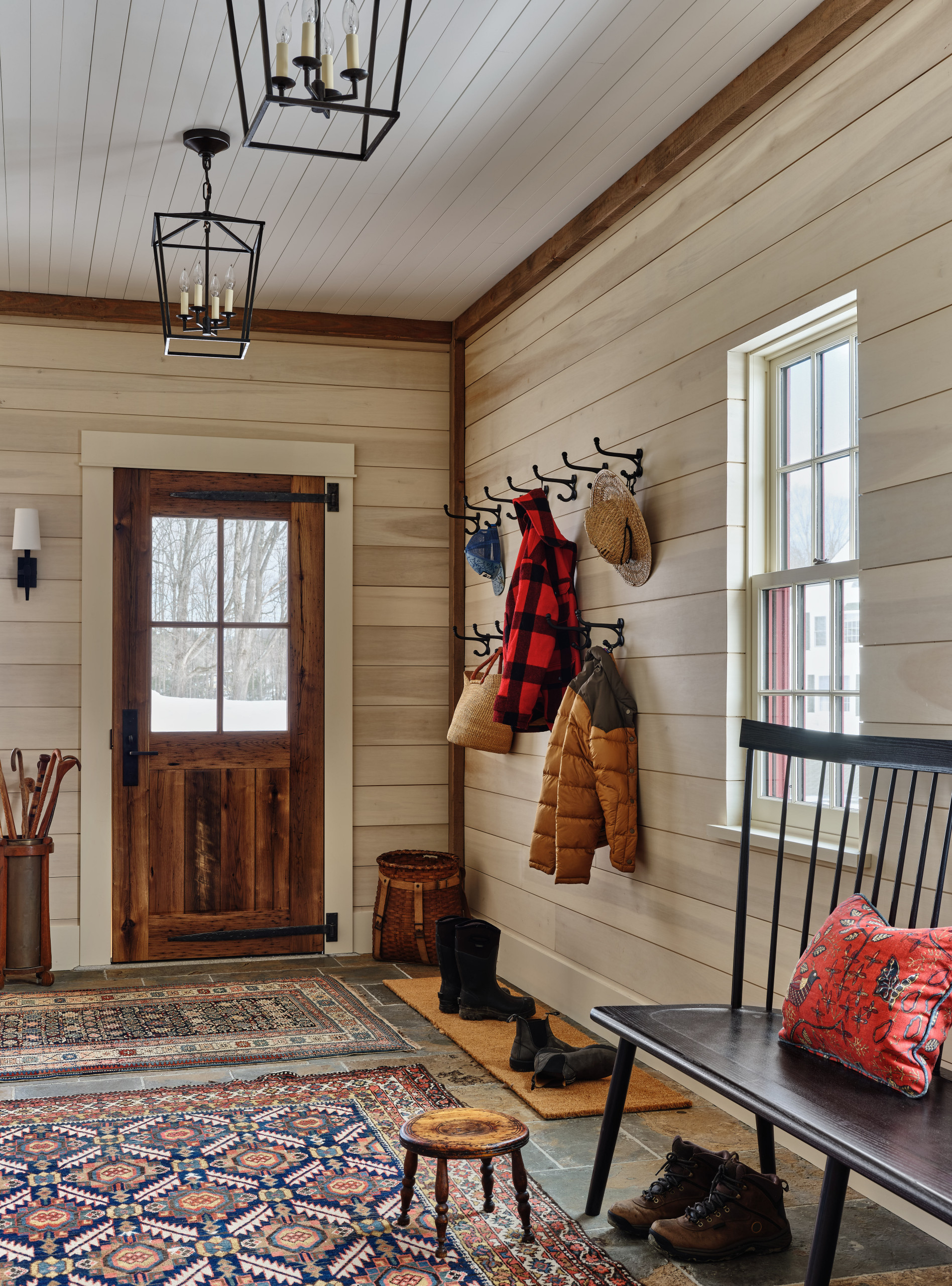 Prepare your mudroom for wet boots. Your guests will tramp in plenty of rain and snow so make sure your mudroom or hallway can cope with the added mess. Lay down heavy-duty mats outside the door for storing boots and lighter rugs inside to protect the floor and ensure your guests don’t slip on a wet surface.