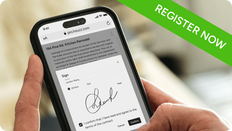 Join our live webinar to see how the Houzz Pro Contracts tool helps you create, send, and finalize professional agreements — complete with eSignatures, smart fields, and branded templates — right from your account.